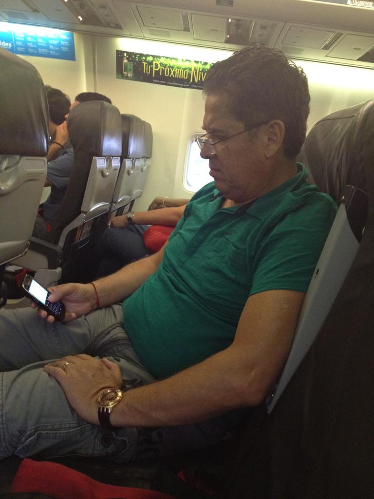 Aquí estan Arely y Mario Bezarez en el avión que l...